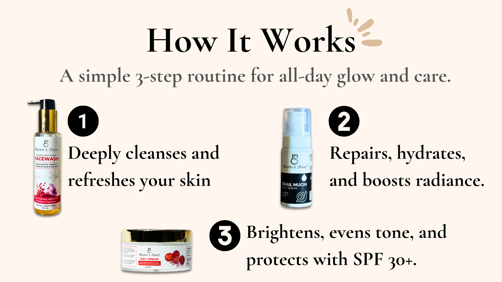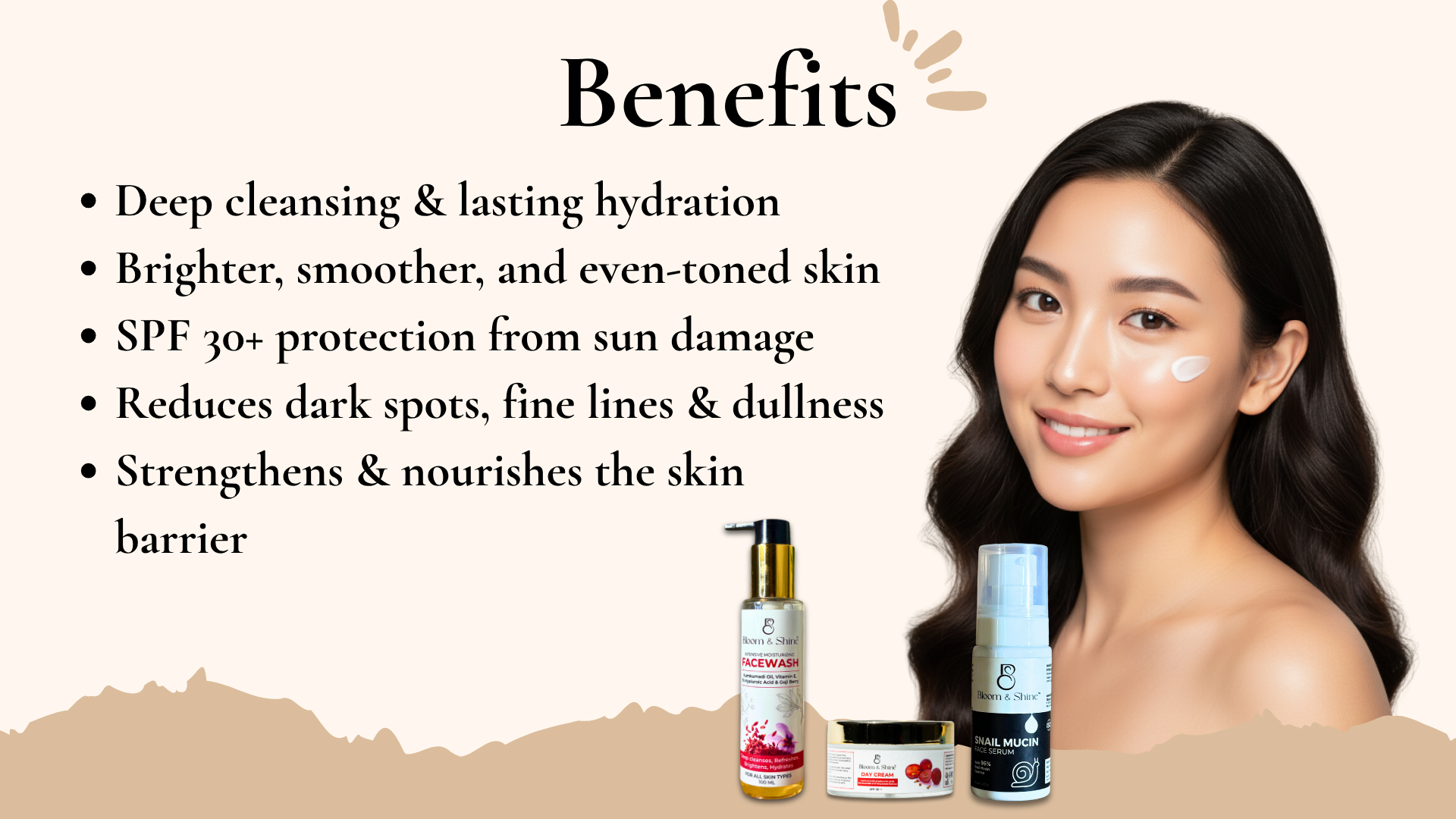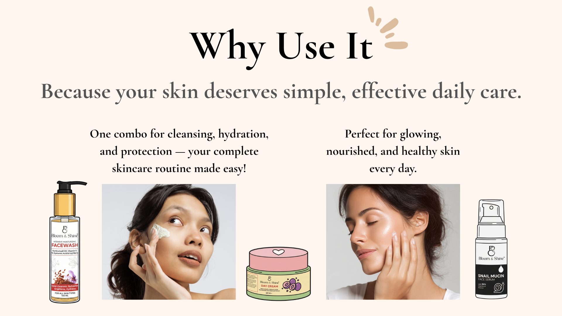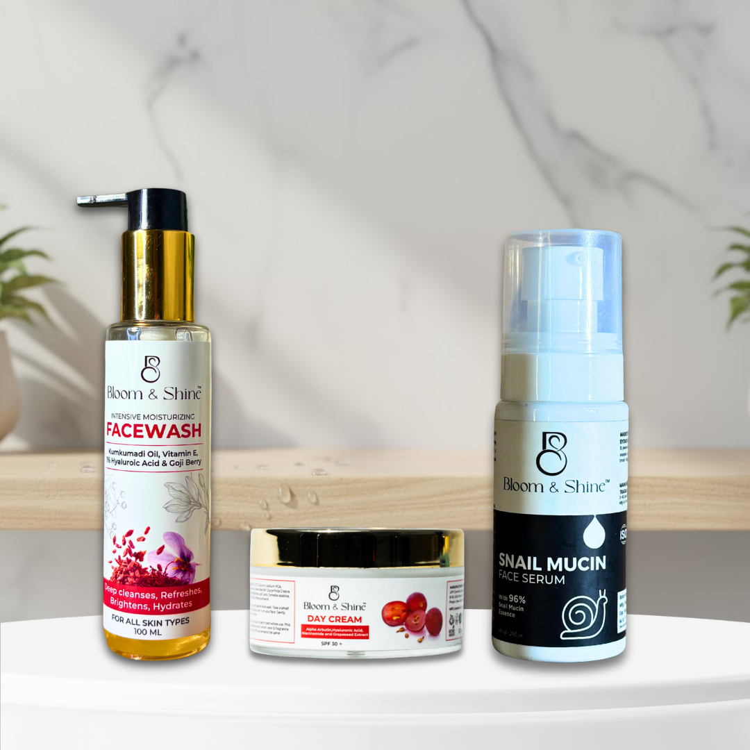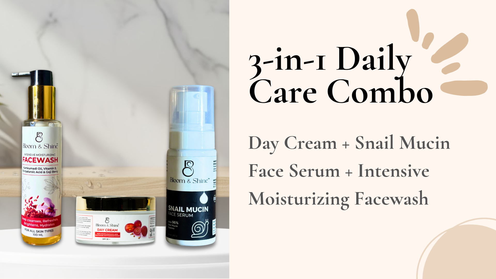 3-in-1 Daily Care Combo: Day Cream + Snail Mucin Face Serum + Intensive Moisturizing Facewash