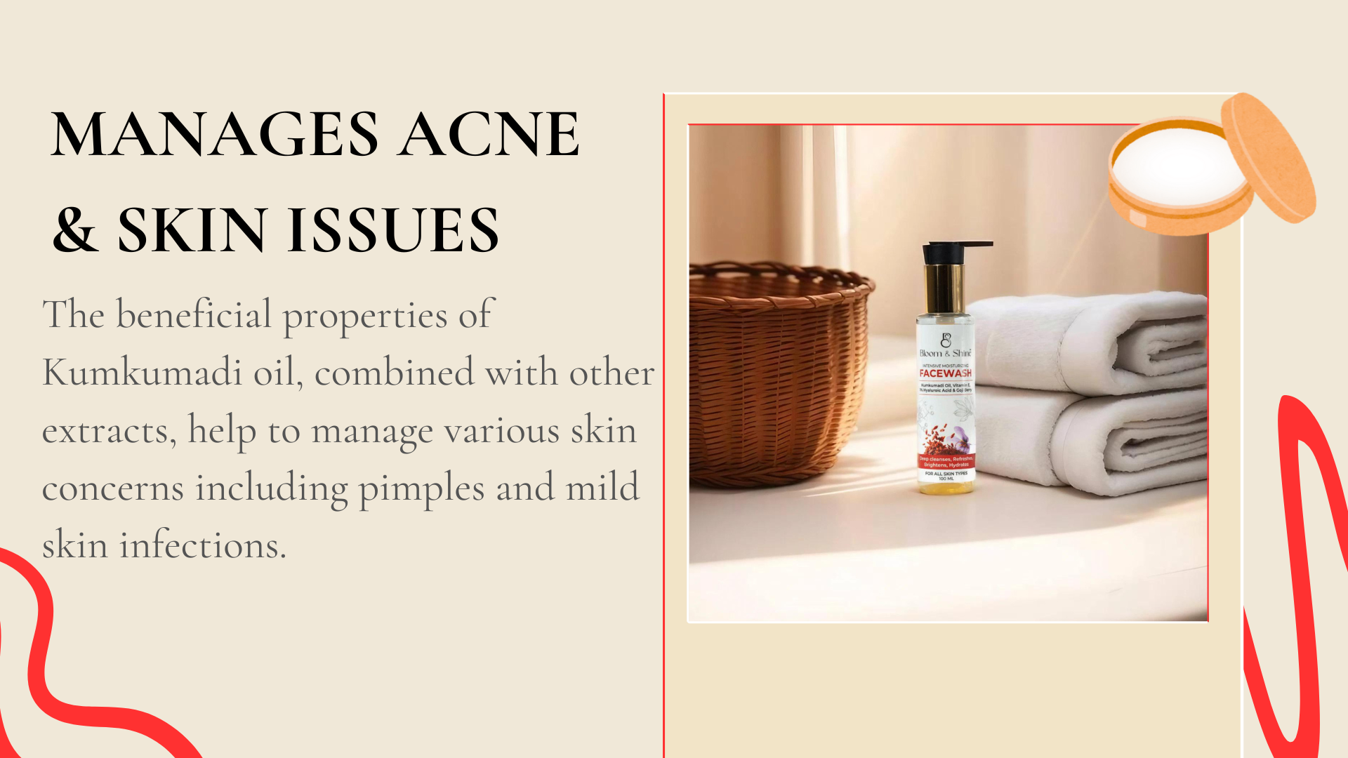 Yes, the gentle formula with Kumkumadi Oil and Vitamin E soothes, nourishes, and helps manage pimples or mild skin issues without causing irritation or dryness.