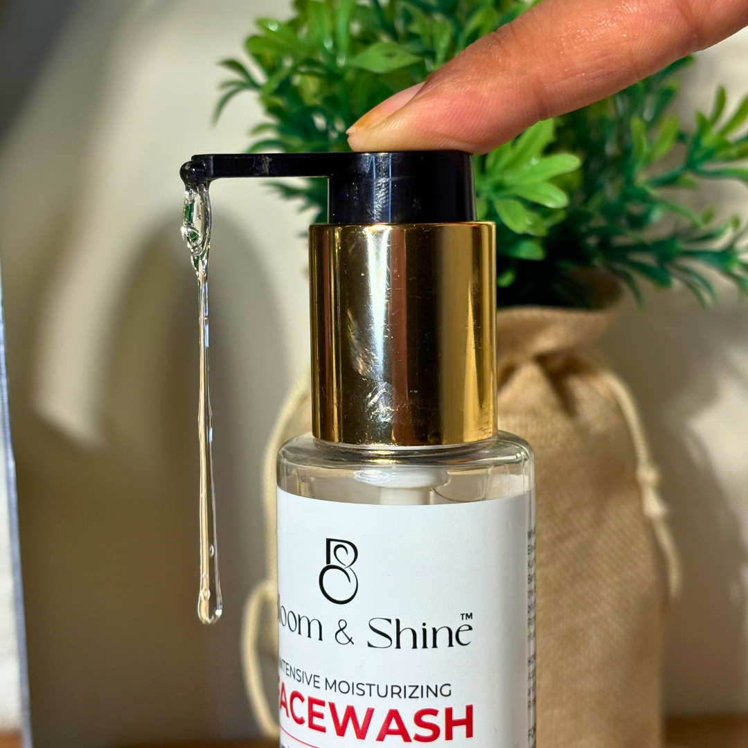 Wet your face, take a small amount of the facewash in your palm, and gently massage it onto your face in a circular motion. Rinse thoroughly with water and pat dry. Follow up with your favorite Bloom and Shine serum and moisturizer.